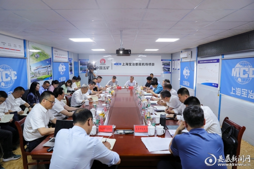 曾超群在現(xiàn)場(chǎng)察看項(xiàng)目建設(shè)情況后,召開會(huì)議聽(tīng)取市城發(fā)集團(tuán)、漣源市主要領(lǐng)導(dǎo)工作匯報(bào)。