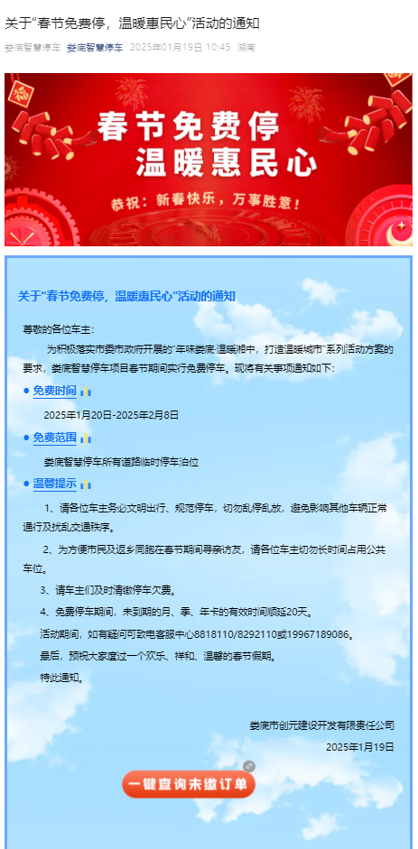 (智慧停車春節(jié)期間免費(fèi)停車公告)