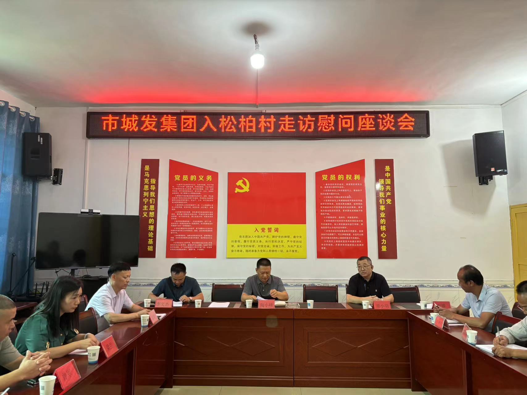 (在松柏村召開走訪慰問座談會)