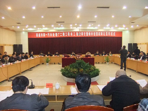 婁底“一污二期”工程竣工驗收與特許經(jīng)營權轉讓會議現(xiàn)場