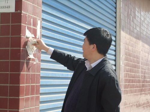 3月6日,市城建投組織干部職工到南垅社區(qū)清除“牛皮癬”。