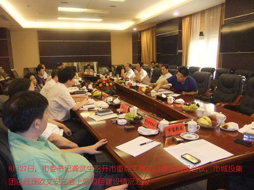 8月27日市委書記龔武生召開市重點工程項目建設(shè)調(diào)研會議市城投集團總經(jīng)理歐文安在會上做項目建設(shè)情況匯報