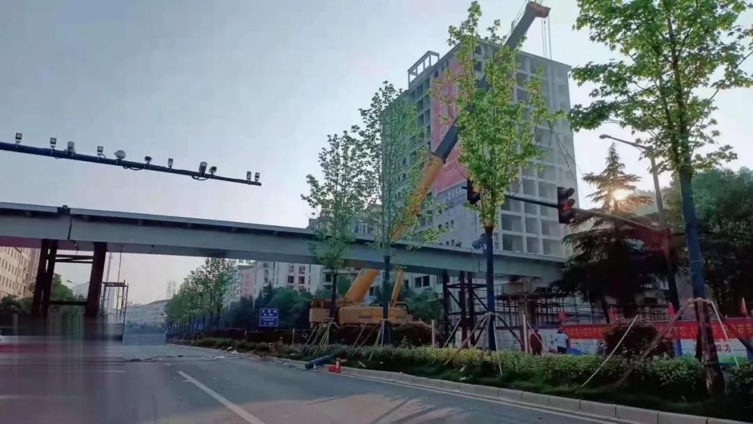 為實(shí)現(xiàn)如期通行目標(biāo),項(xiàng)目部利用周末車流人流較少的有力條件,在交警支隊(duì)的配合支持下,集中人力物力采取封閉施工的方式集中施工。25日晚8時(shí)許,總長(zhǎng)56.1米的人行天橋梁體被分為三段(分別長(zhǎng)19米、21米、16.1米),從經(jīng)開區(qū)箱梁制作工廠運(yùn)輸至現(xiàn)場(chǎng),50余名工作人員連同數(shù)臺(tái)重型吊裝機(jī)同步施工作業(yè)。市城發(fā)集團(tuán)黨委副書記、總經(jīng)理?xiàng)畎亓,黨委委員、總工程師彭思平等班子成員至現(xiàn)場(chǎng)指導(dǎo)吊裝工作。