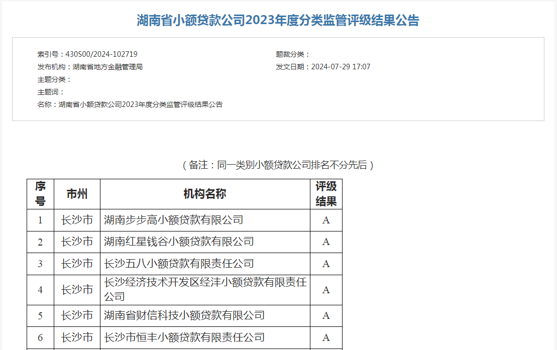 穩(wěn)健領(lǐng)航!城投小貸再獲湖南省小額貸款公司分類監(jiān)管A類評級