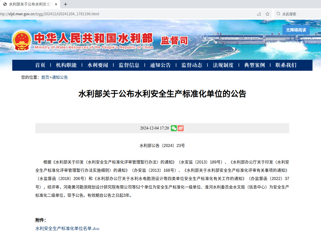 近日,水利部發(fā)布《關(guān)于公布水利安全生產(chǎn)標準化單位的公告》,婁底市水利水電工程建設(shè)有限責任公司順利通過水利部安全生產(chǎn)標準化單位公示,獲評水利安全生產(chǎn)標準化一級單位。