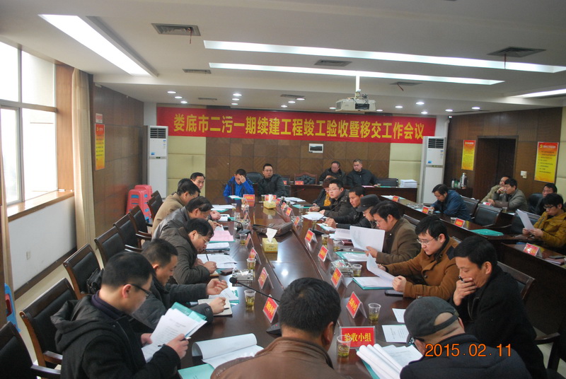 2015年2月11日,婁底市第二污水處理廠一期續(xù)建工程項目通過竣工驗收及移交工作會議在市城投集團456會議室舉行,市政府副秘書長林有良主持會議,市直相關部門參加了會議。經過驗收專家組認真的評估,一致同意婁底市第二污水處理廠一期續(xù)建工程項目通過竣工驗收,標志著婁底市第二污水處理廠一期需建工程經過半年多的努力,正式竣工并移交市自來水公司運行管理。