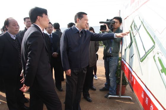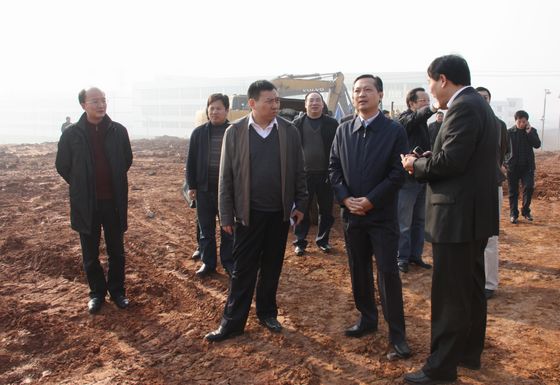 圖為市長張碩輔在三一重工項(xiàng)目建設(shè)調(diào)研現(xiàn)場(chǎng)