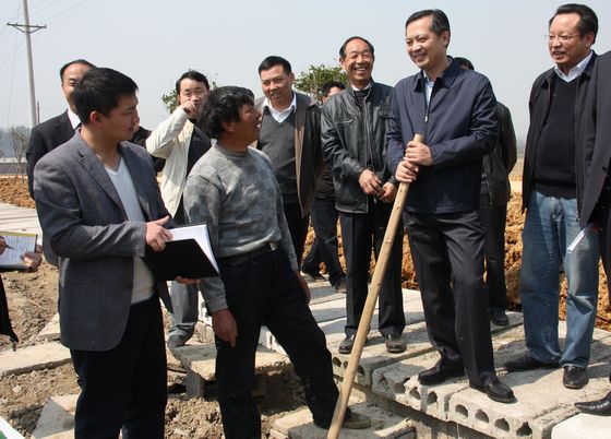 圖為市委副書記、市長張碩輔(左二)在雪花啤酒項(xiàng)目建設(shè)工地現(xiàn)場(chǎng)